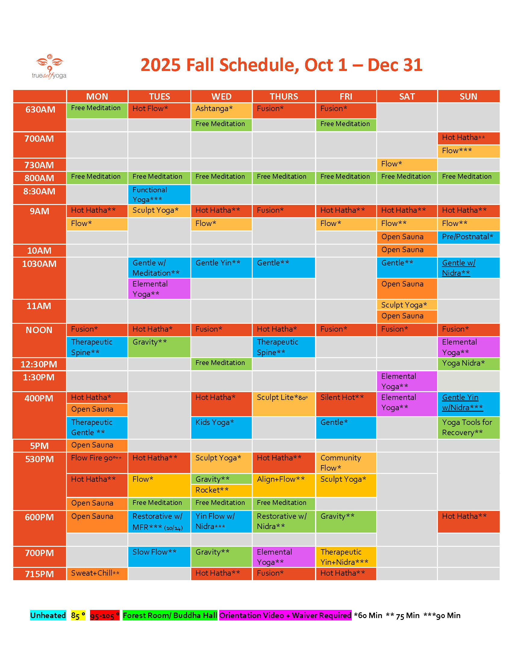 True Self Yoga classes cultivate physical health and connection to your higher Self. With over 80 in-person classes each week, you’ll find a class to fit your practice, your mood, and your schedule. To allow an exploration of the different styles we offer, we have a One-Time Special Introductory Offer: $30 for One Week of Unlimited Classes (for Washington residents only, one per person).